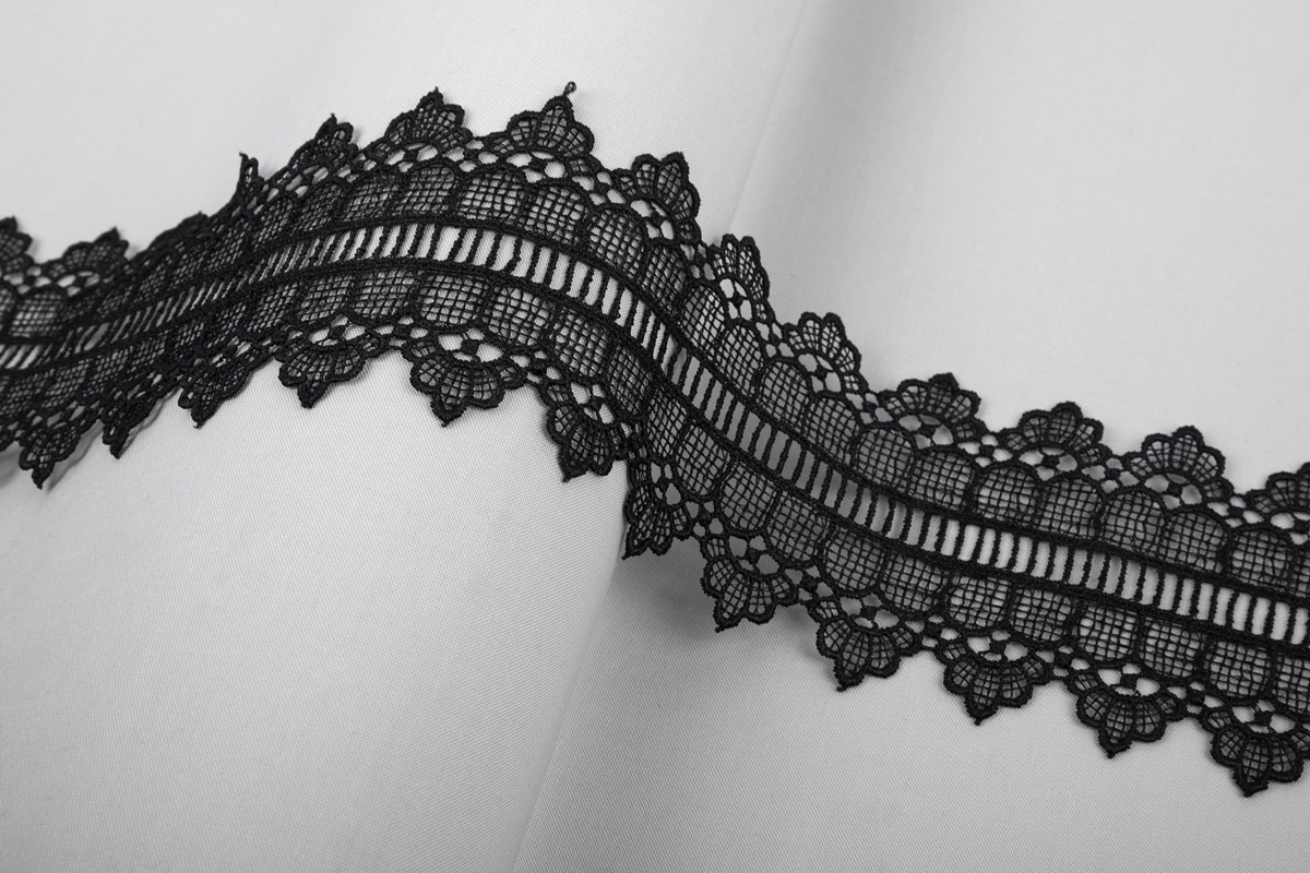 Кружево гипюр состоит из выпуклых кружевных элементов, соединенных сетчатыми «связками». Кружево гипюр имеет ажурное плетение, что придает ему особый изыск. Применяется не только для декоративной отделки женской одежды и домашнего текстиля, но и в декоре интерьера.