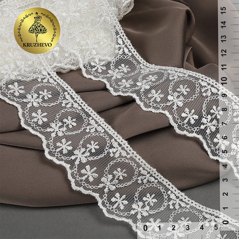Очень красивое и нежное кружево на мягкой сетке от бренда Kruzhevo. Воздушное, тонкое, приятное на ощупь. Кружево на сетке подходит, как для шитья, отделки, так и для скрапбукинга, изготовления кукол, свадебных украшений и одежды в стиле эко, бохо и шебби-шик.