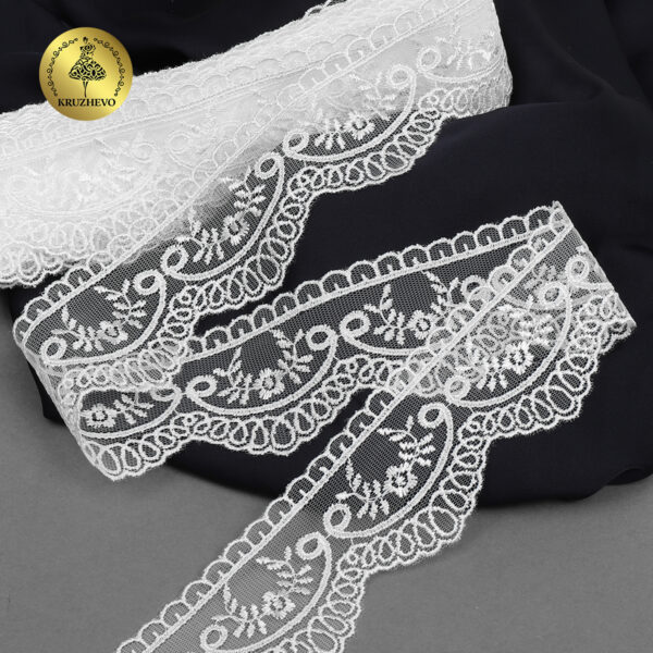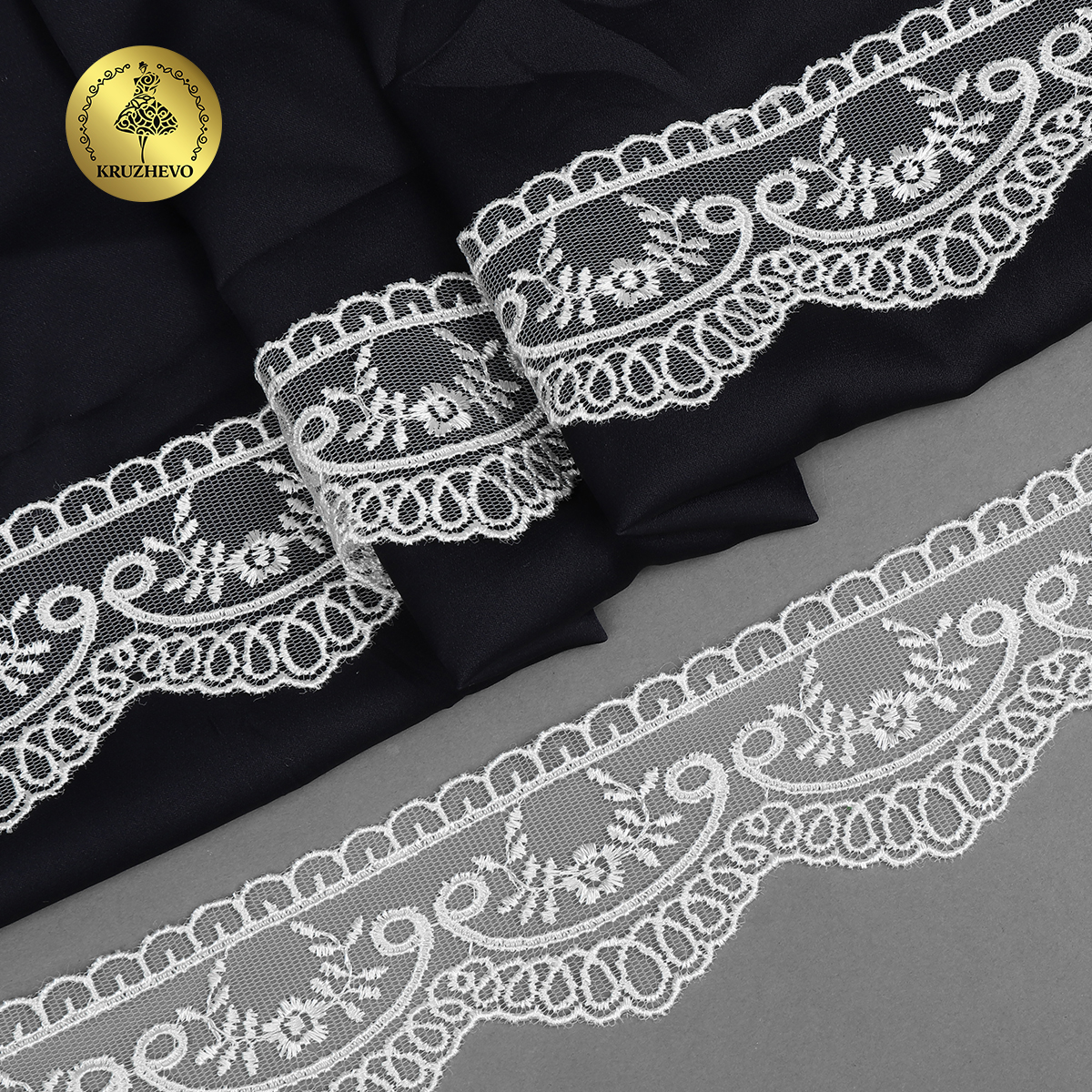 Очень красивое и нежное кружево на мягкой сетке от бренда Kruzhevo. Воздушное, тонкое, приятное на ощупь. Кружево на сетке подходит, как для шитья, отделки, так и для скрапбукинга, изготовления кукол, свадебных украшений и одежды в стиле эко, бохо и шебби-шик.