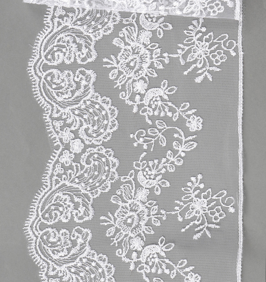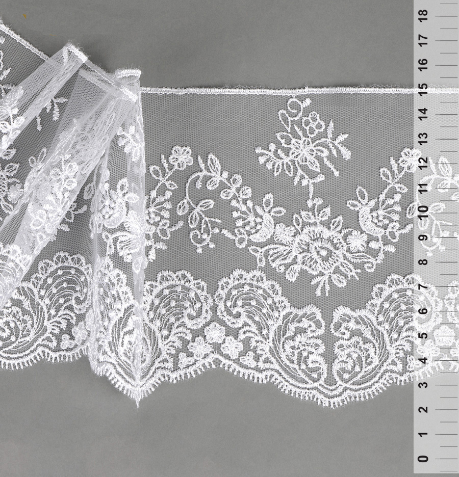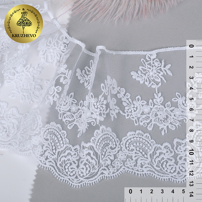 Кружево на сетке с шикарным ажурным орнаментом в стиле Блюмарин от бренда Kruzhevo! Изысканое и воздушное. Вещи, украшенные таким кружевом, становятся изящнее и элегантнее. Идеально подходит для одежды, постельного белья, балдахинов, наборов для крещения и на выписку. Отлично сочетается с сатином!