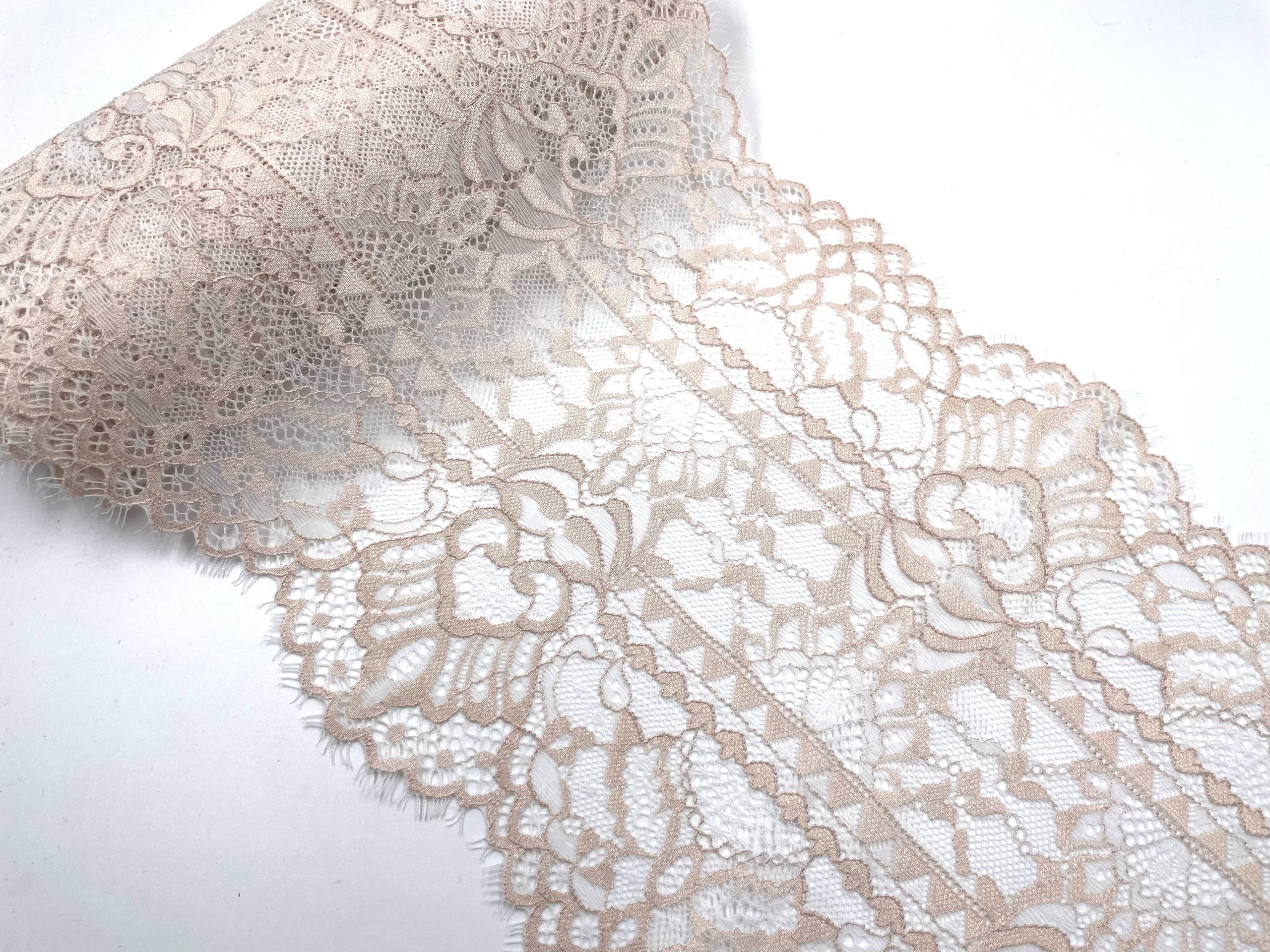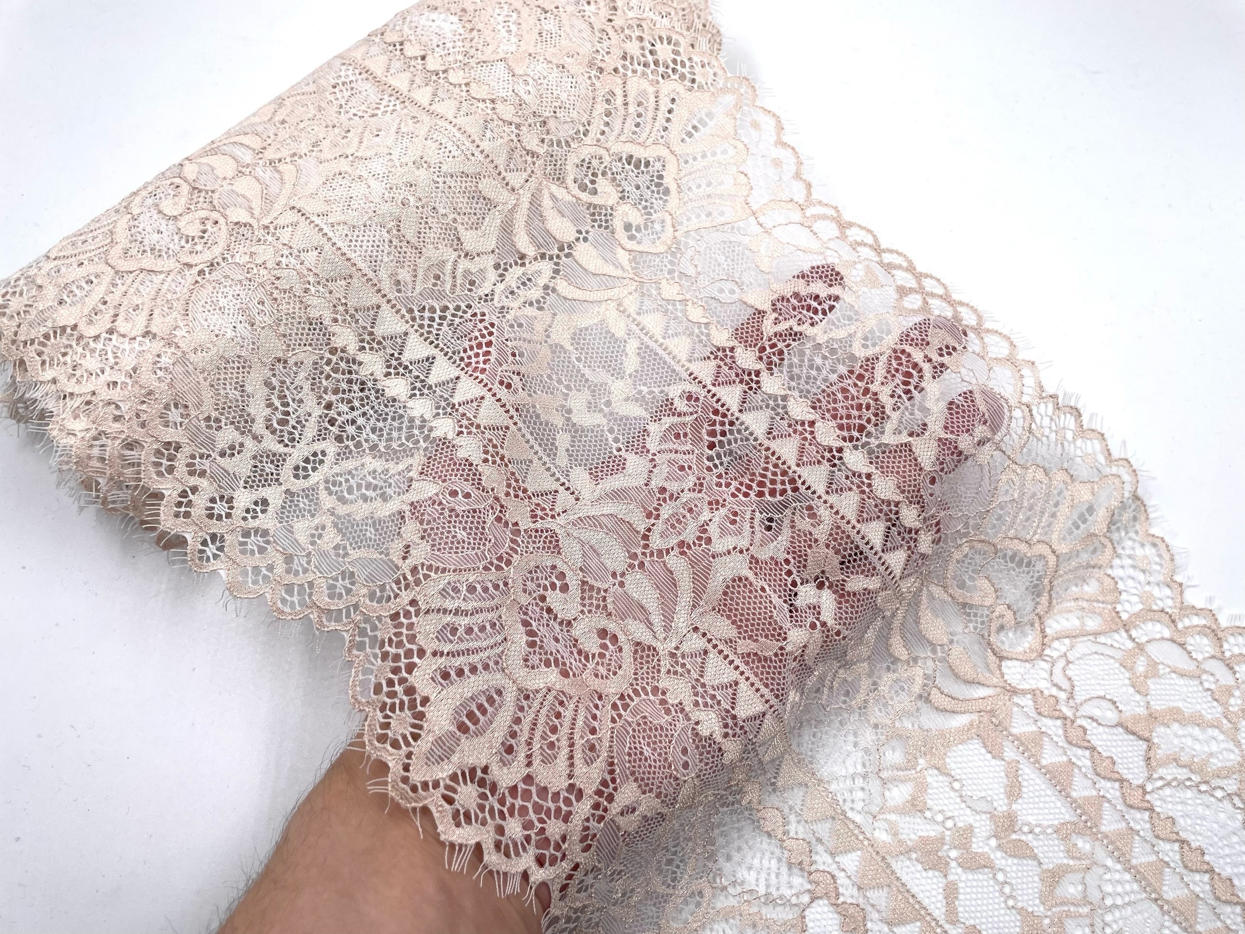 Легкое французское кружево в романтичном стиле с фестонами по краю. Очень мягкое и приятное на ощупь.