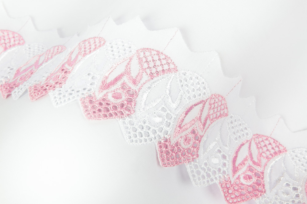 Шитье кружево — это вид декоративной тесьмы с прорезанными отверстиями и вышитыми ажурными узорами. Применяется для украшения одежды, отделки постельного белья, занавесок, полотенец, скатертей.