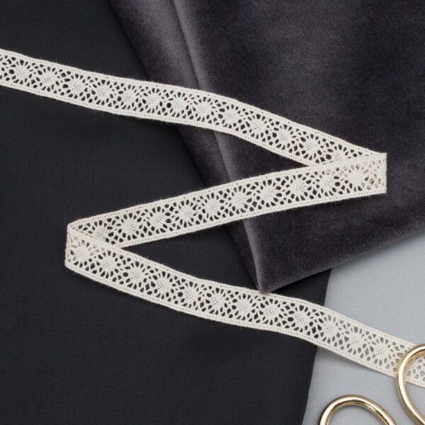 Вязаное кружево легко спутать с hand-made – рисунок у него сложный и выразительный. Узоры, созданные из переплетения множества нитей, принимают нужную форму и красиво смотрятся на любом изделии. Вязаное кружево — отличный вариант для декора одежды и домашнего текстиля. А также если хотите дополнить аксессуар деталью, будто связанной крючком, такой вариант отлично подойдёт. (7739154)