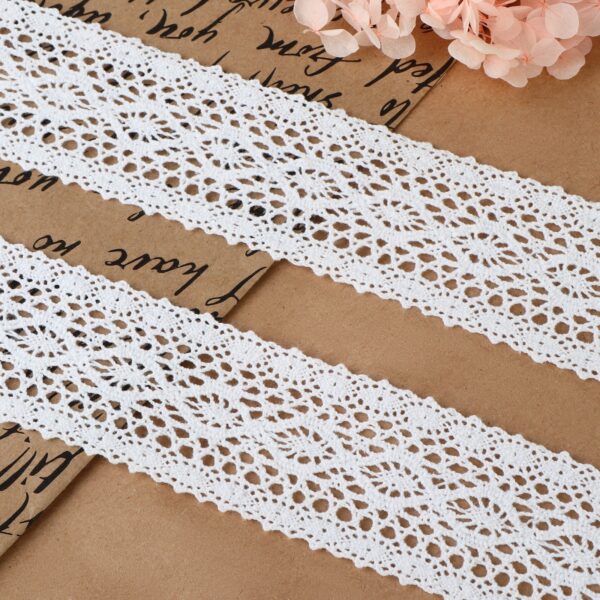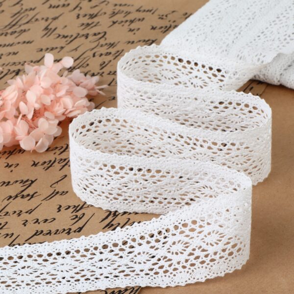 Вязаное кружево легко спутать с hand-made – рисунок у него сложный и выразительный. Узоры, созданные из переплетения множества нитей, принимают нужную форму и красиво смотрятся на любом изделии. Вязаное кружево — отличный вариант для декора одежды и домашнего текстиля. А также если хотите дополнить аксессуар деталью, будто связанной крючком, такой вариант отлично подойдёт. (5140682)