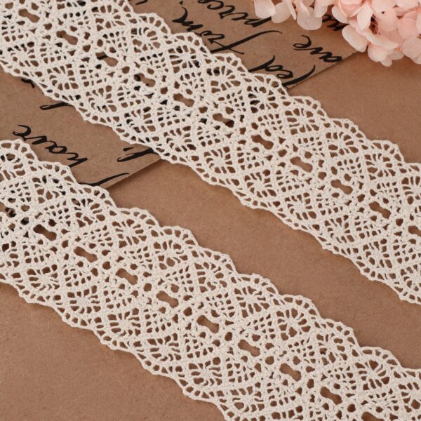 Вязаное кружево легко спутать с hand-made – рисунок у него сложный и выразительный. Узоры, созданные из переплетения множества нитей, принимают нужную форму и красиво смотрятся на любом изделии. Вязаное кружево — отличный вариант для декора одежды и домашнего текстиля. А также если хотите дополнить аксессуар деталью, будто связанной крючком, такой вариант отлично подойдёт. (9642160)
