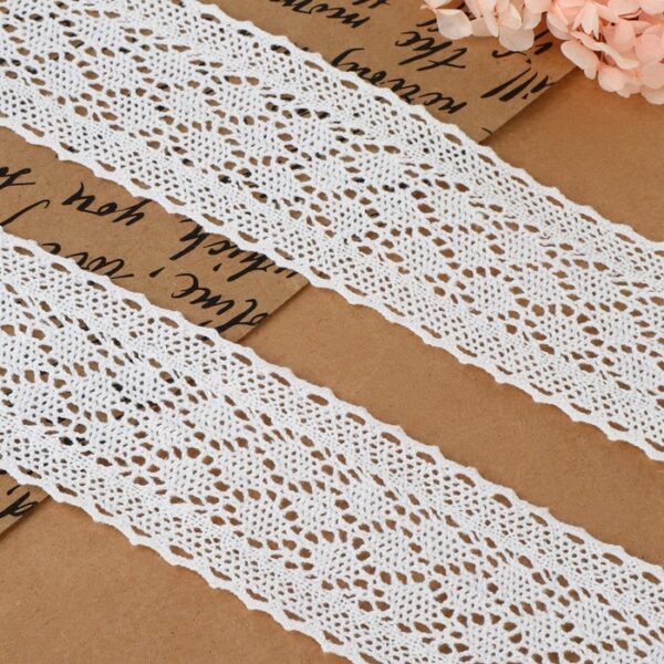 Вязаное кружево легко спутать с hand-made – рисунок у него сложный и выразительный. Узоры, созданные из переплетения множества нитей, принимают нужную форму и красиво смотрятся на любом изделии. Вязаное кружево — отличный вариант для декора одежды и домашнего текстиля. А также если хотите дополнить аксессуар деталью, будто связанной крючком, такой вариант отлично подойдёт. (5140684)