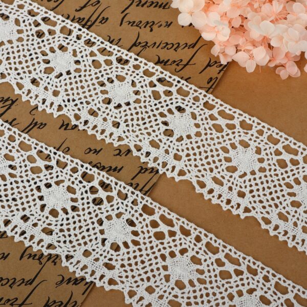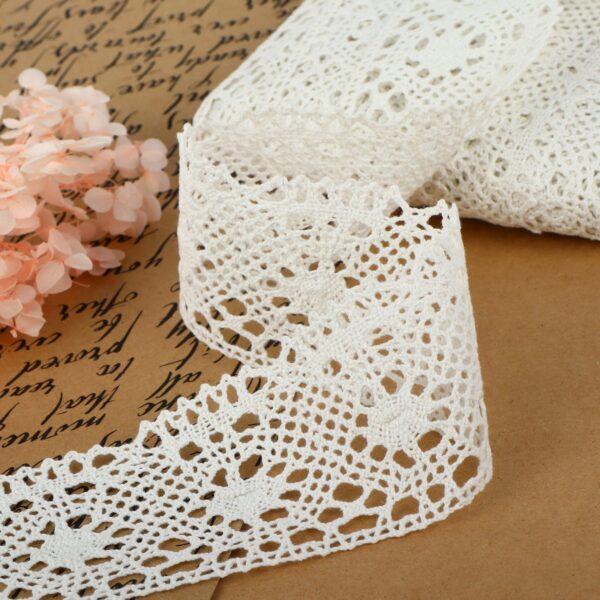 Вязаное кружево легко спутать с hand-made – рисунок у него сложный и выразительный. Узоры, созданные из переплетения множества нитей, принимают нужную форму и красиво смотрятся на любом изделии. Вязаное кружево — отличный вариант для декора одежды и домашнего текстиля. А также если хотите дополнить аксессуар деталью, будто связанной крючком, такой вариант отлично подойдёт. (1354179)