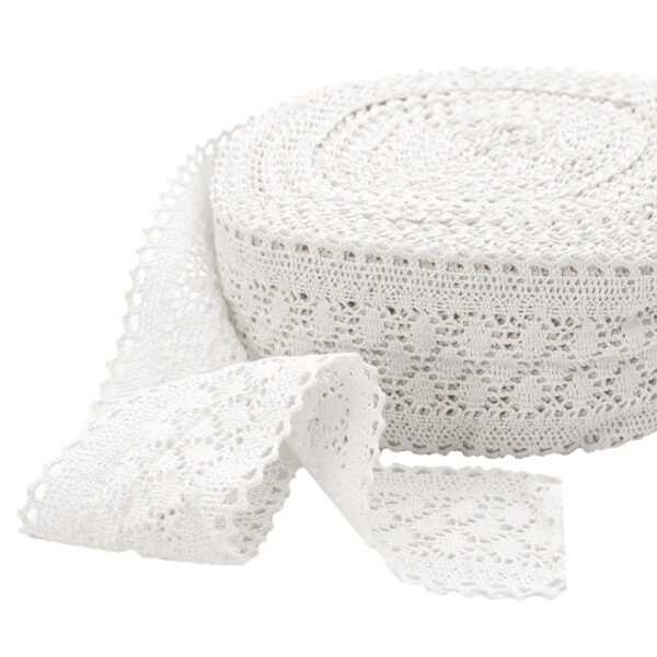 Вязаное кружево легко спутать с hand-made – рисунок у него сложный и выразительный. Узоры, созданные из переплетения множества нитей, принимают нужную форму и красиво смотрятся на любом изделии. Вязаное кружево — отличный вариант для декора одежды и домашнего текстиля. А также если хотите дополнить аксессуар деталью, будто связанной крючком, такой вариант отлично подойдёт. (506754)