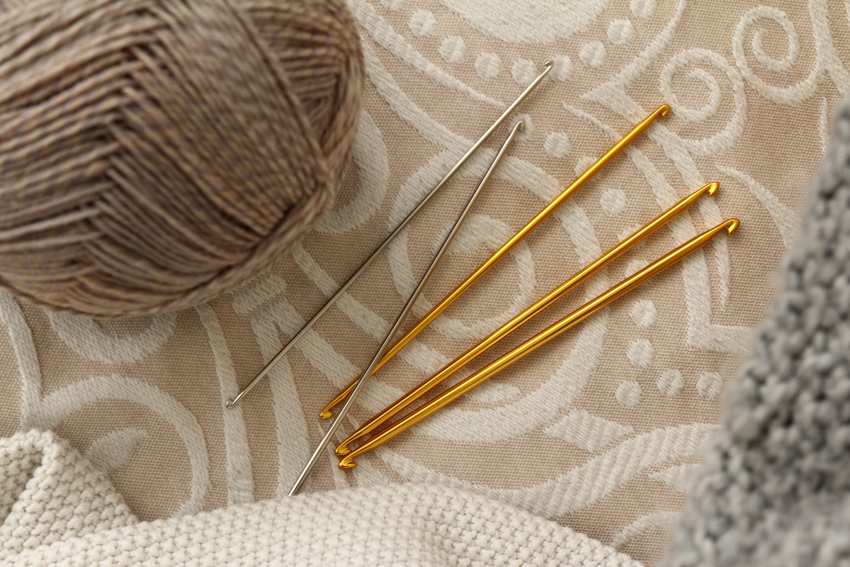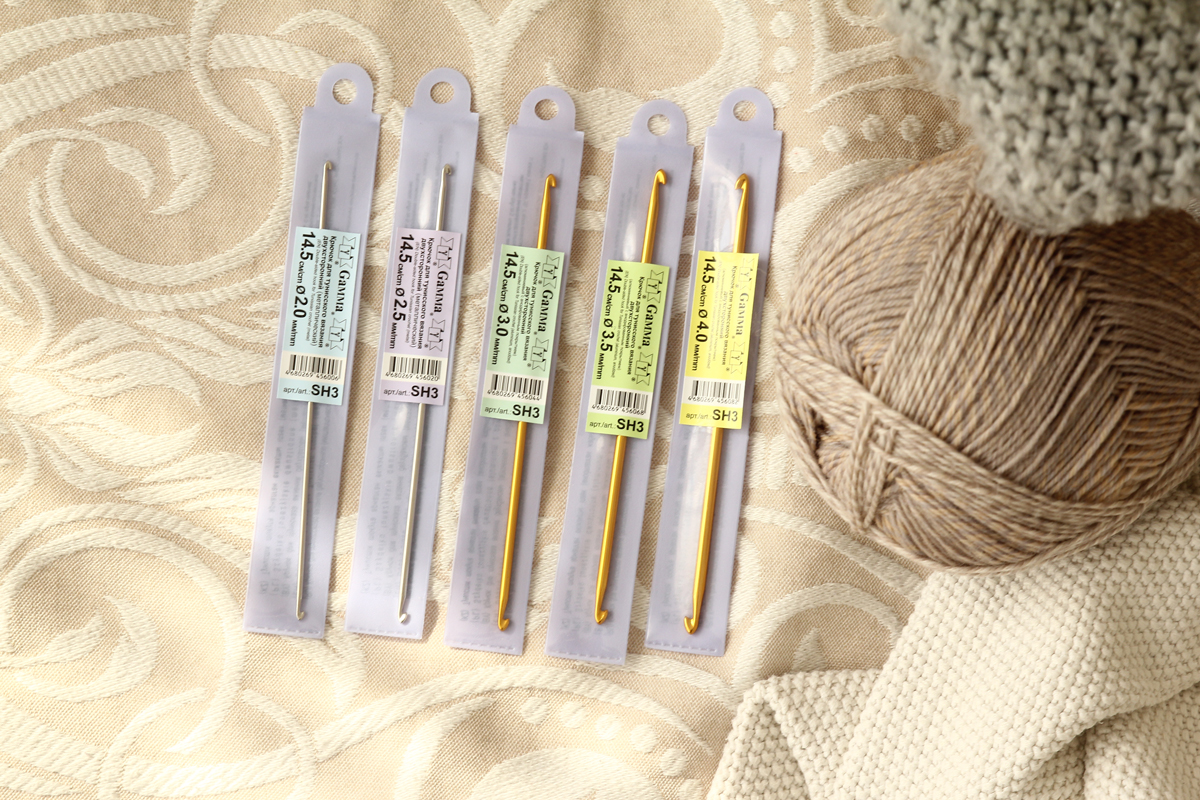 Крючки для вязания двухсторонние металлические с анодированным покрытием.