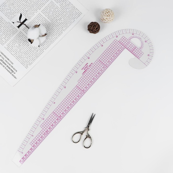 Лекало — это шаблон для создания выкройки. Его изгибы помогут построить кривые, проложить разметку и проверить окружности. Замерьте припуски с помощью прямого угла. Инструмент из пластика не деформируется.