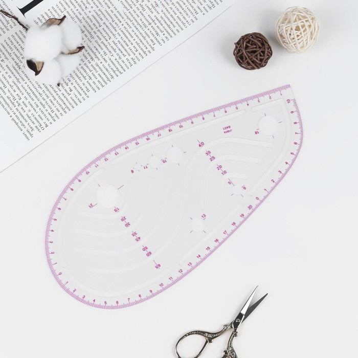 Лекало — это шаблон для создания выкройки. Его изгибы помогут построить кривые, проложить разметку и проверить окружности. Замерьте припуски с помощью прямого угла. Инструмент из пластика не деформируется.