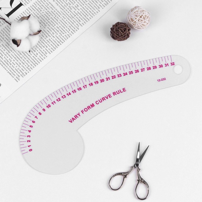 Лекало — это шаблон для создания выкройки. Его изгибы помогут построить кривые, проложить разметку и проверить окружности. Замерьте припуски с помощью прямого угла. Инструмент из пластика не деформируется.
