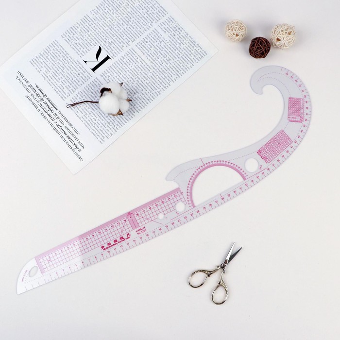 Лекало — это шаблон для создания выкройки. Его изгибы помогут построить кривые, проложить разметку и проверить окружности. Замерьте припуски с помощью прямого угла. Инструмент из пластика не деформируется.