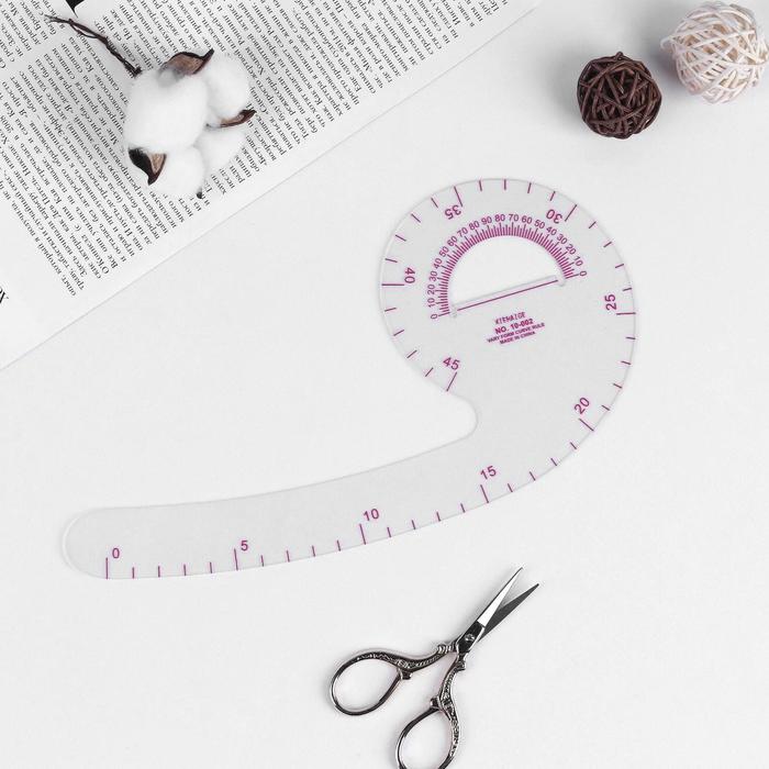 Лекало — это шаблон для создания выкройки. Его изгибы помогут построить кривые, проложить разметку и проверить окружности. Замерьте припуски с помощью прямого угла. Инструмент из пластика не деформируется.