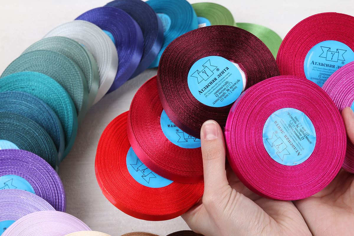 Лента атласная, мягкая и приятная на ощупь. Используется для украшения и отделки одежды, упаковки подарков, свадебного оформления машин, рукоделия, в скрапбукинге, в изготовлении цветов, в технике канзаши и тд.