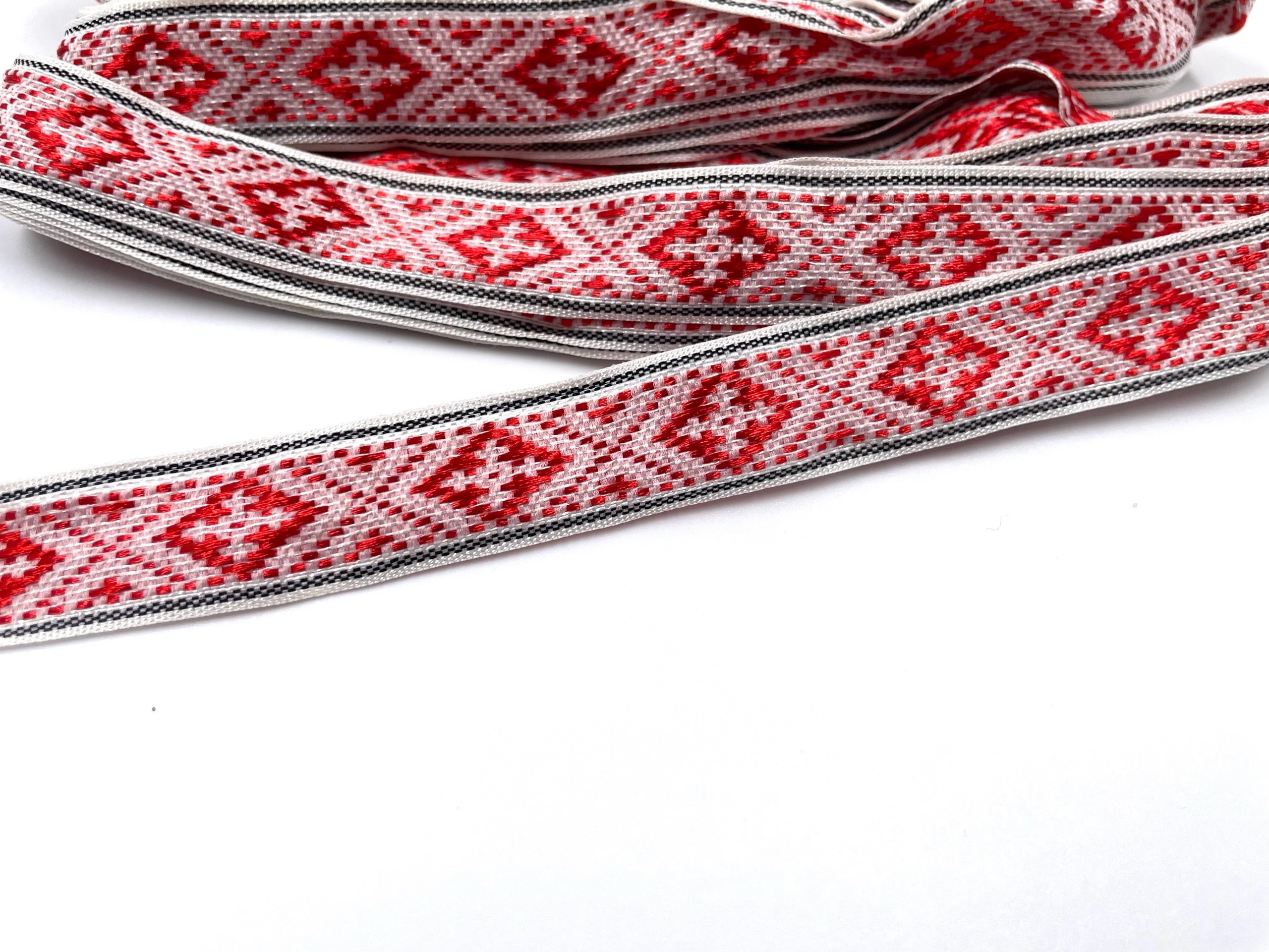Прикоснитесь к богатой культуре и традициям с этой великолепной отделочной лентой. Яркий и выразительный белорусский орнамент шириной 20 мм станет заметным акцентом, который превратит обычную вещь в уникальное произведение искусства с национальным колоритом.