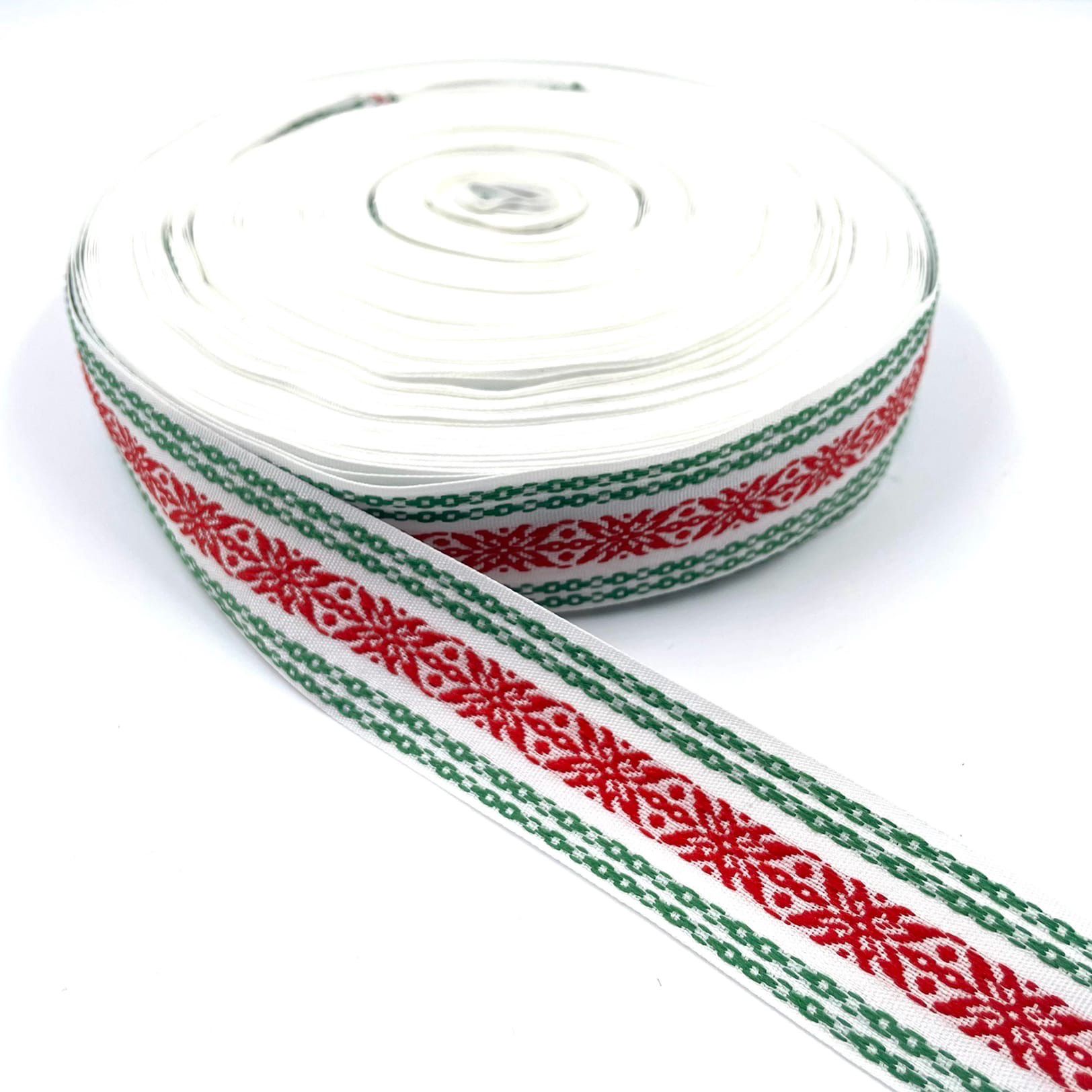 Превратите любую вещь в яркий дизайнерский акцент с помощью этой широкой 30-миллиметровой ленты с белорусским орнаментом. Ее выразительный плетеный узор станет главным украшением народного костюма, современной одежды или домашнего декора, мгновенно добавив им самобытности и характера.