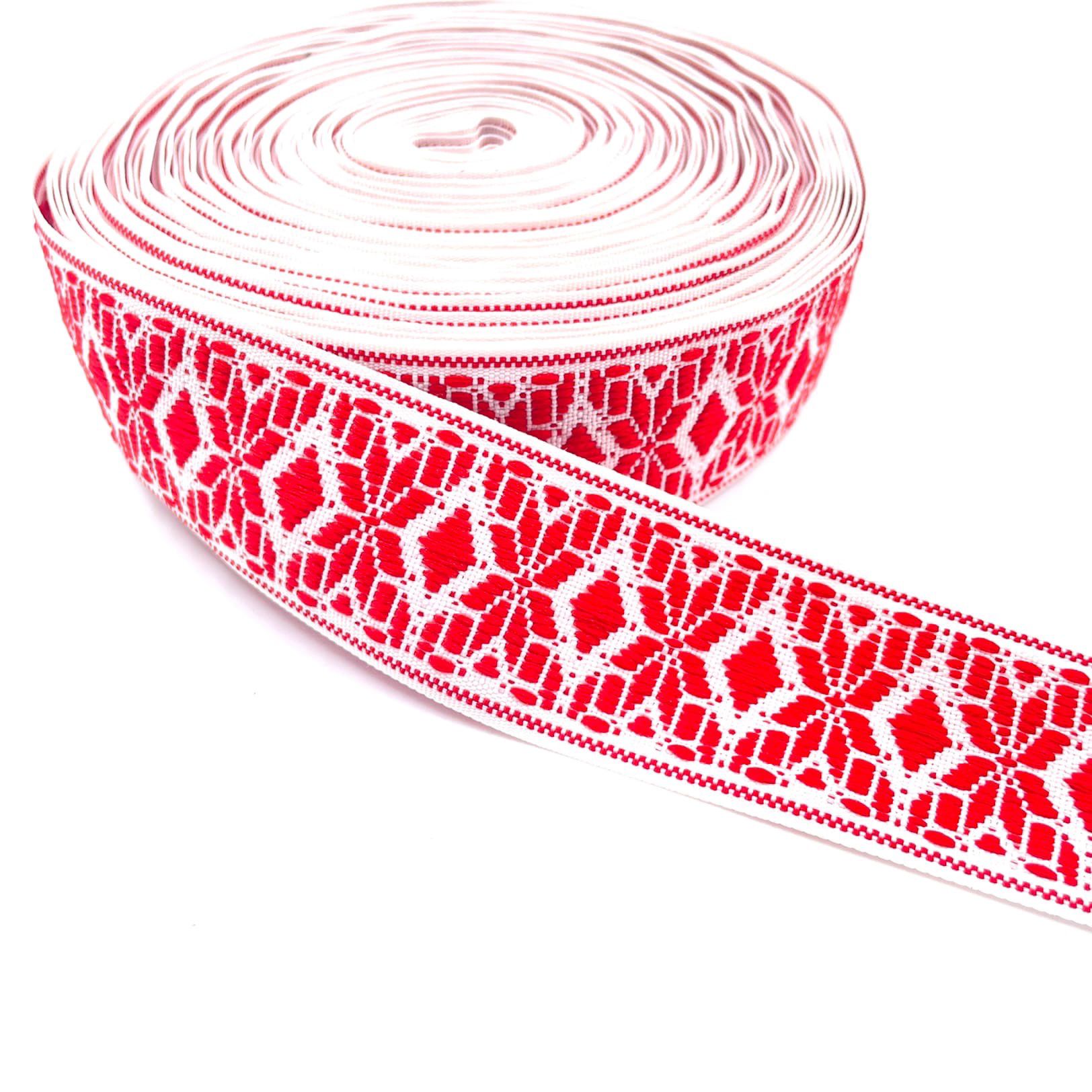 Лента яркая с плетеным узором.