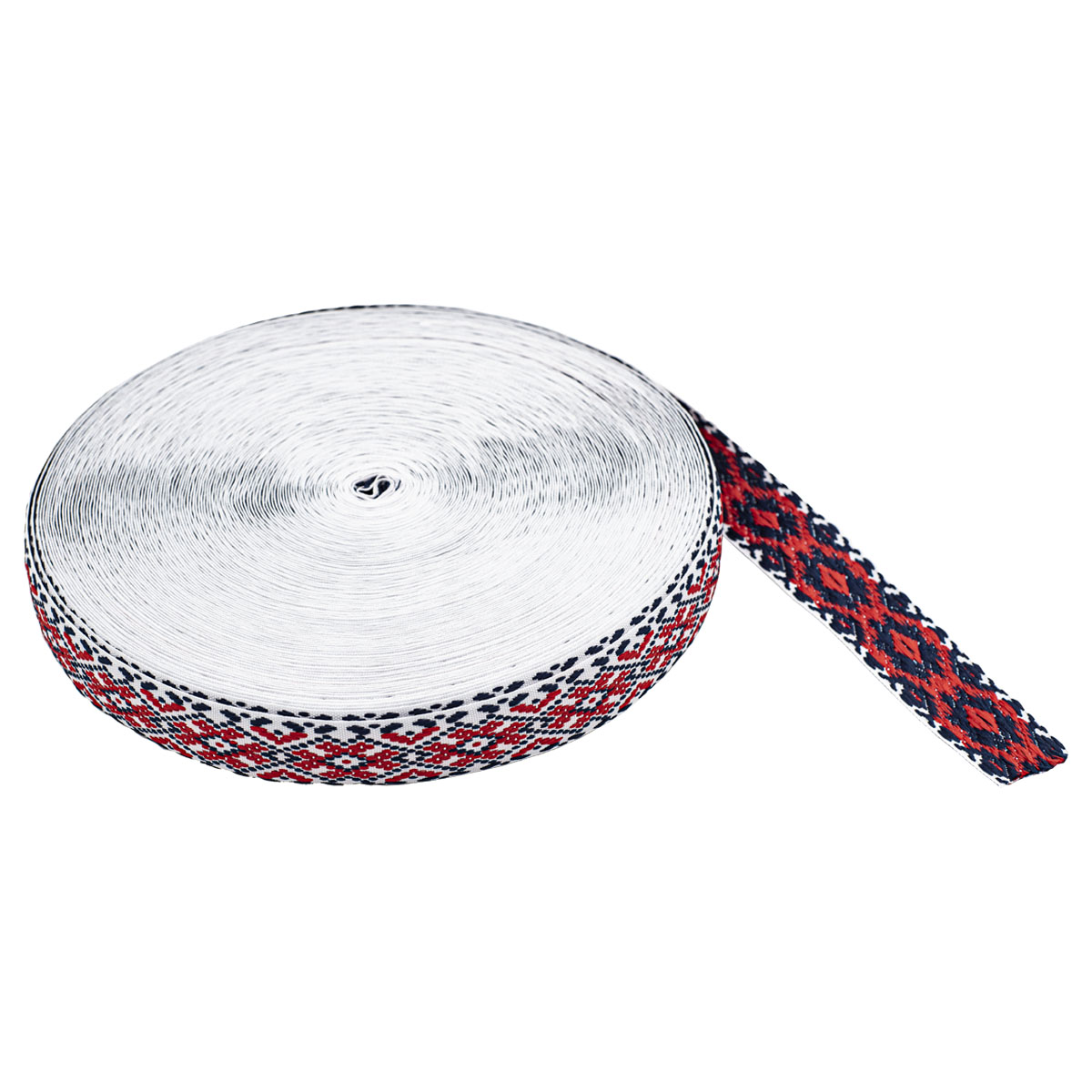 Лента яркая с плетеным узором.
