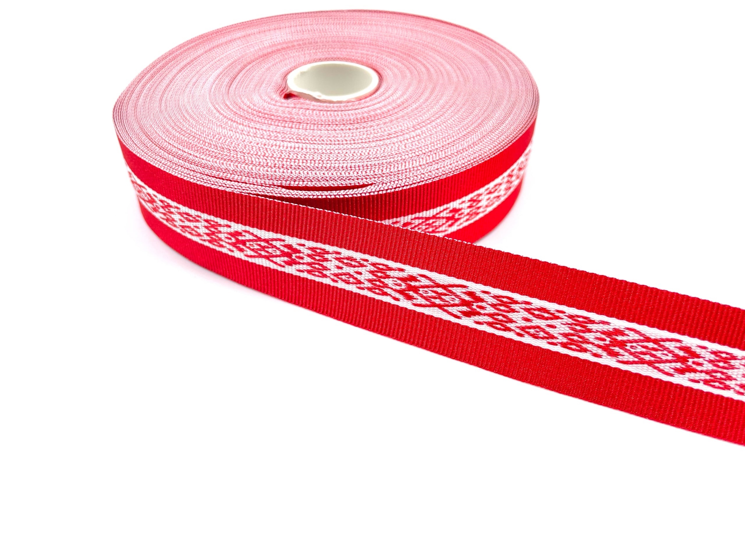Лента яркая с плетеным узором.