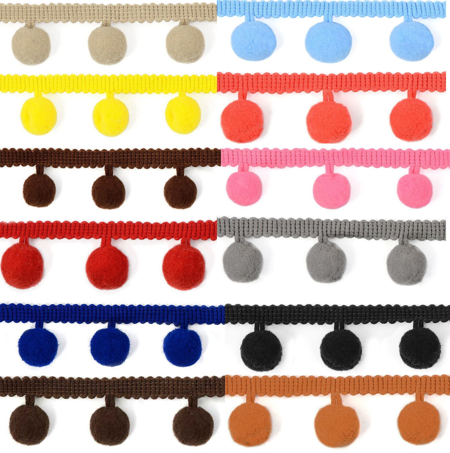 Бахрома с помпонами используется для отделки одежды, аксессуаров и интерьеров. Диаметр помпона ~ 2 см.