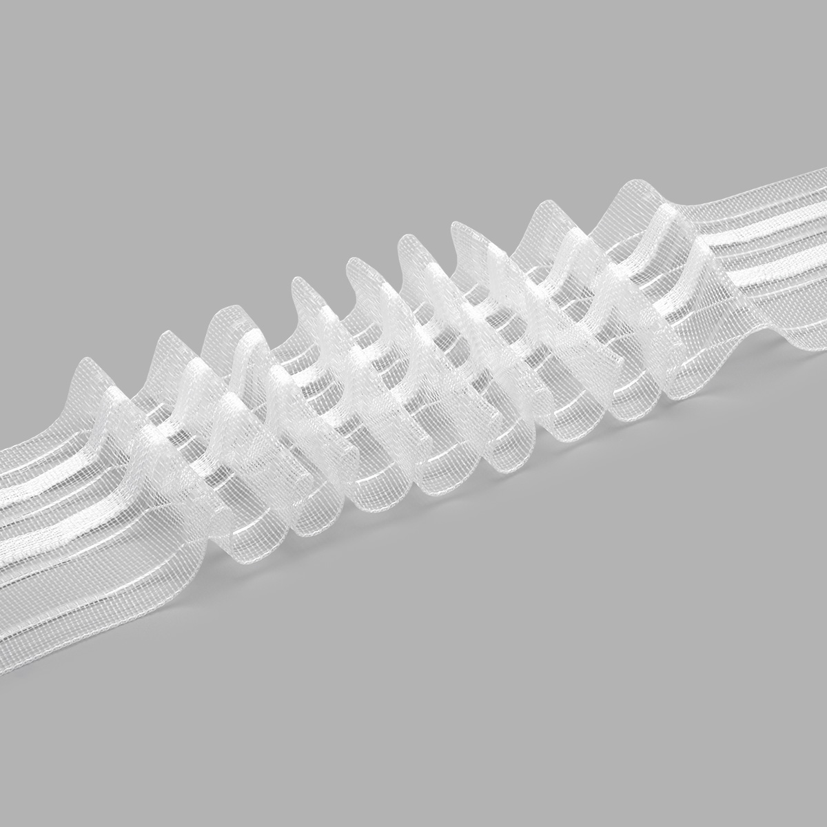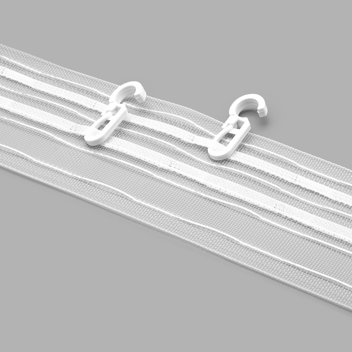 Многокарманная шторная тесьма — настоящая находка для материалов различной плотности, отлично драпирует полупрозрачные легкие ткани, так как сделана из органзы и почти невидима на ткани.