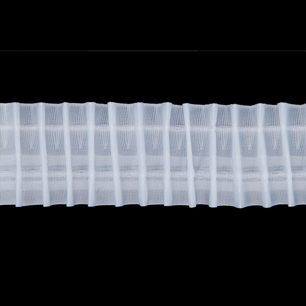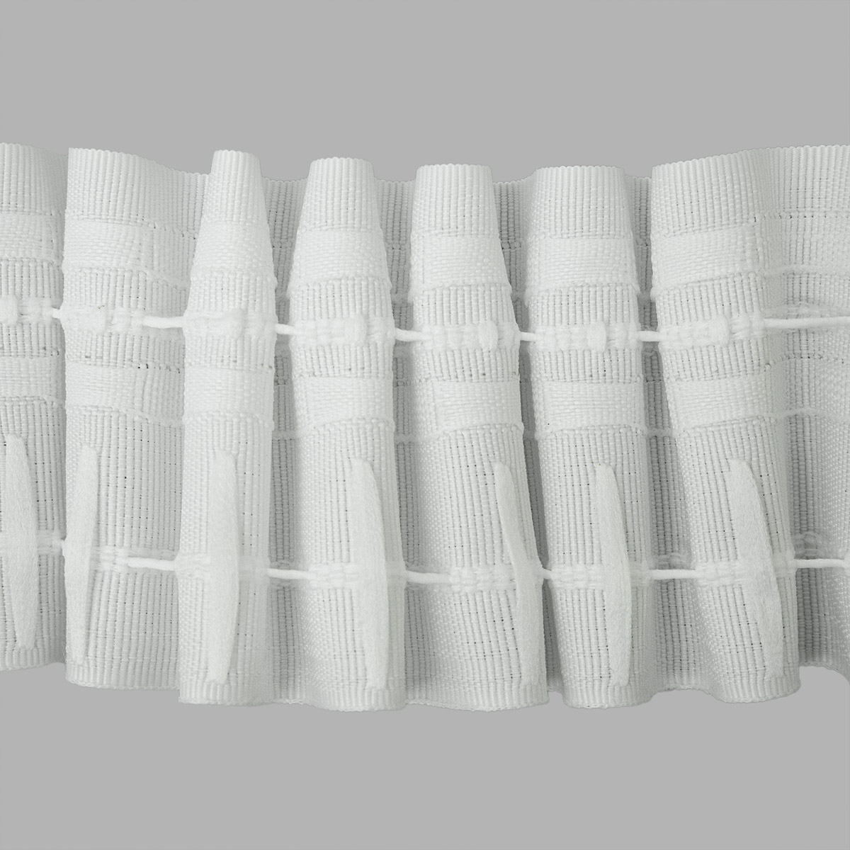 Тесьма позволяет формировать ‘параллельные складки’, для этого в нее вшито 2 ряда шнуров, которые регулируют их глубину.