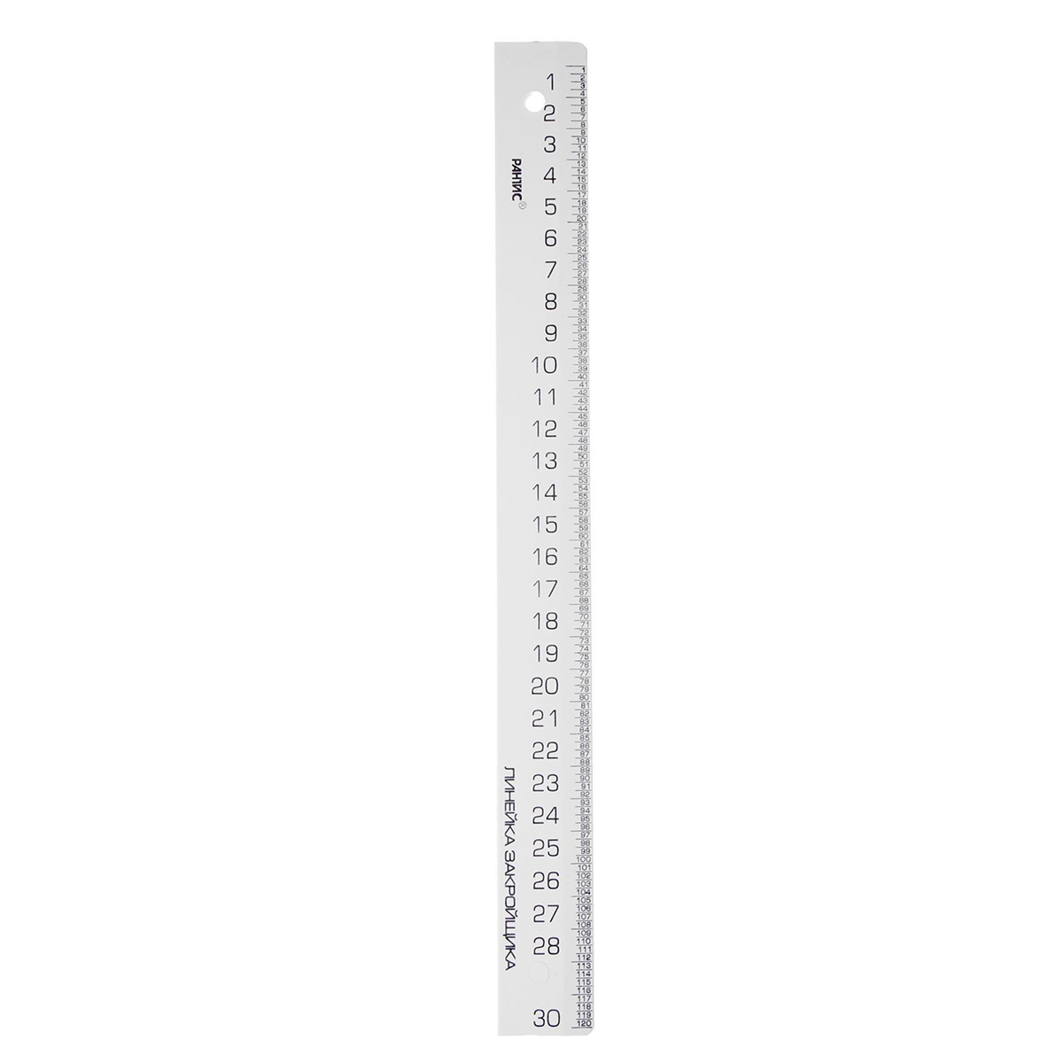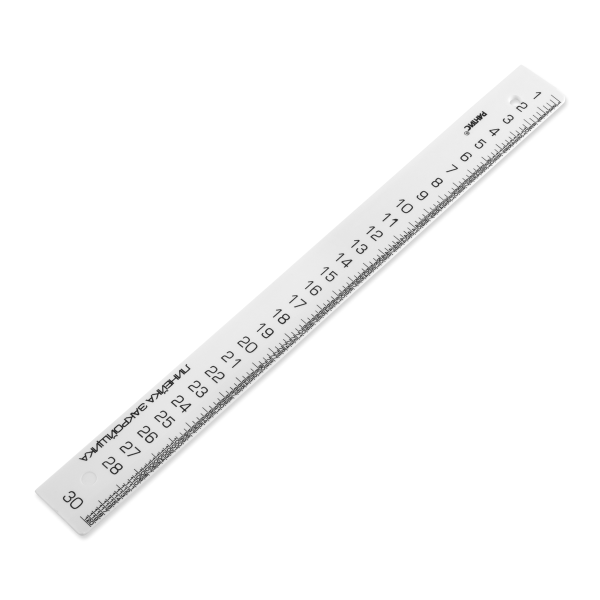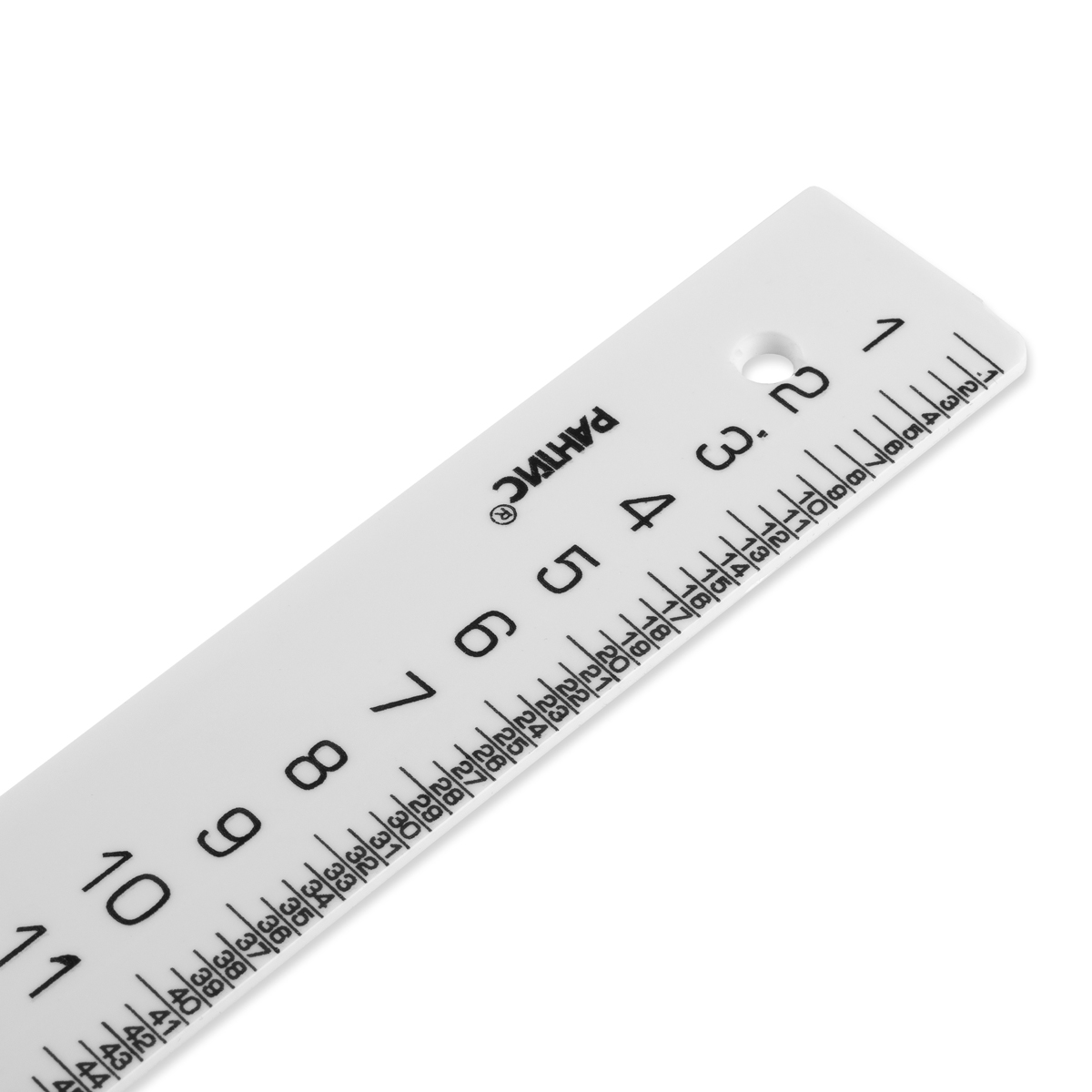 Линейка изготовлена из непрозрачного пластика, имеет гладкую поверхность.