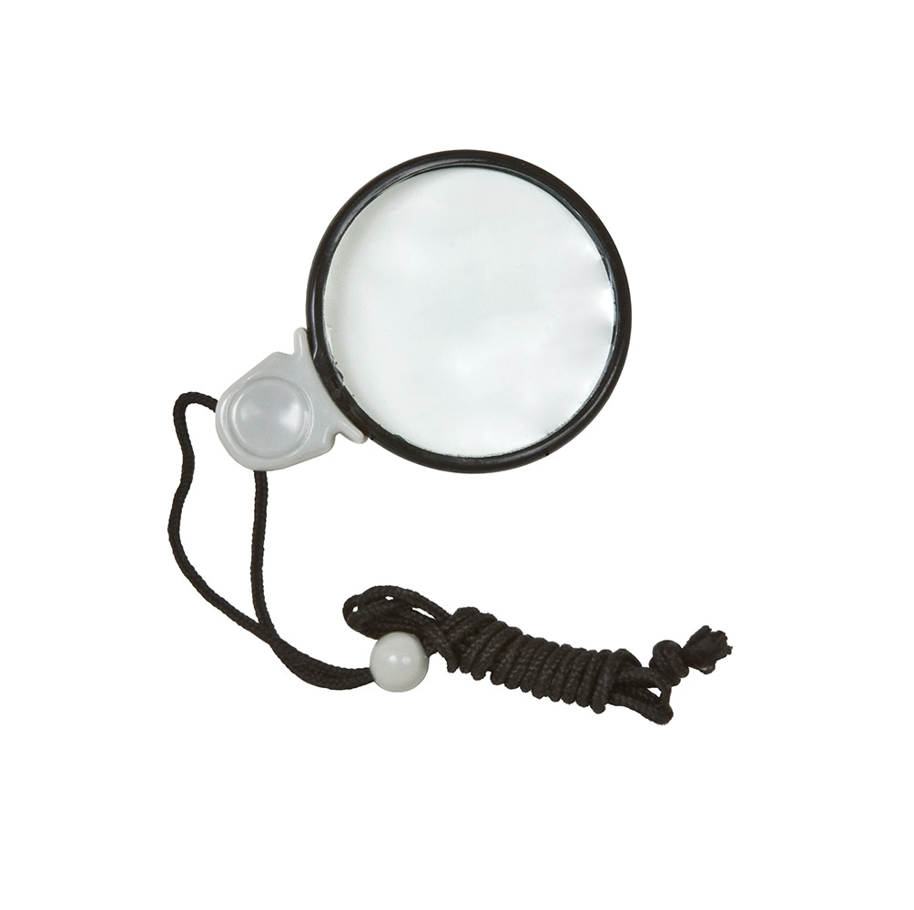 Лупа со шнуром, который может надеваться на шею или на руку. Защитный мягкий чехол.