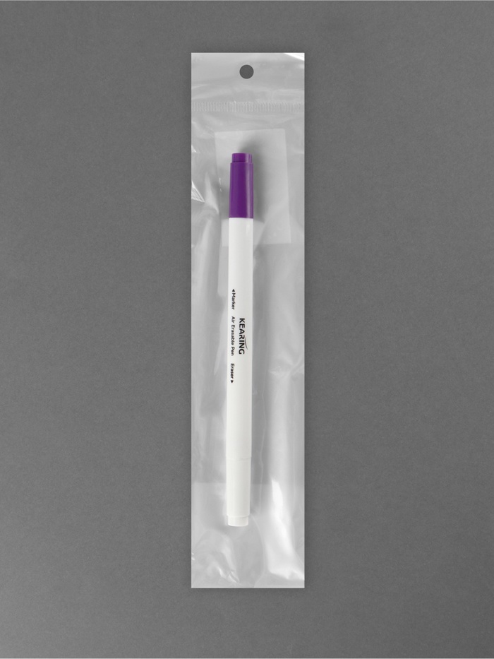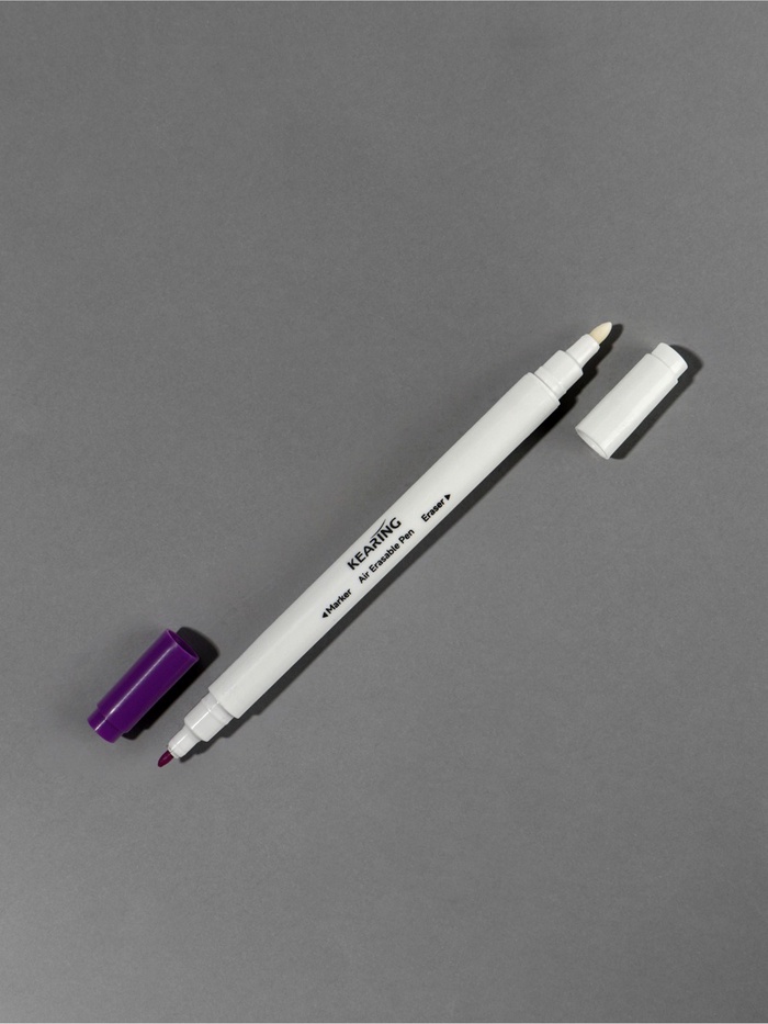 Двусторонний маркер предназначен для выполнения чертежей по ткани. Одна сторона маркера имеет фиолетовый цвет — ей вы можете начертить выкройку. Вторая сторона является корректором и предназначена для исправления и удаления помарок и лишних деталей.