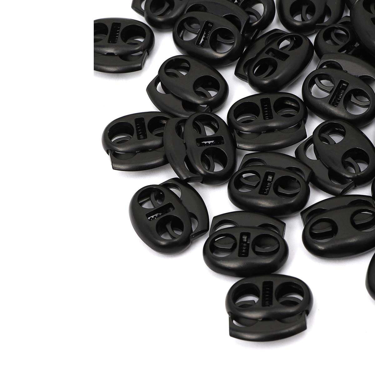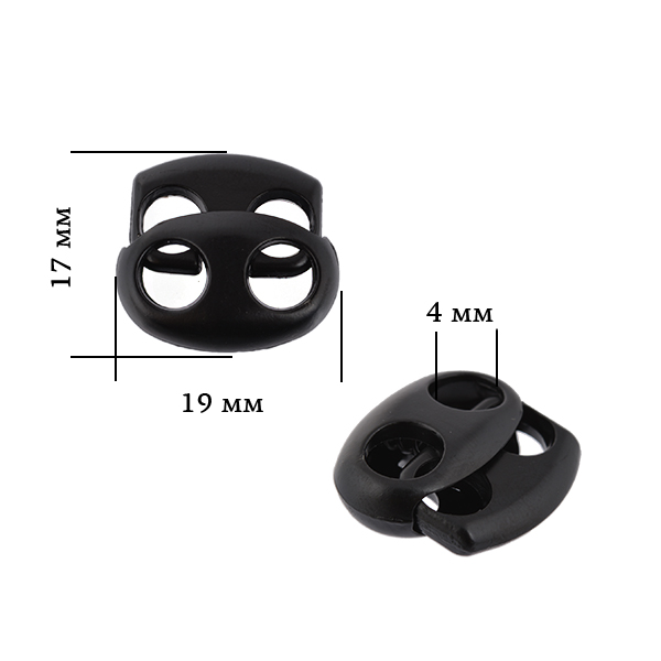 Зажим для 2-х шнуров. Применяются для фиксации шнуров в застежках, декоративных элементах и пр.