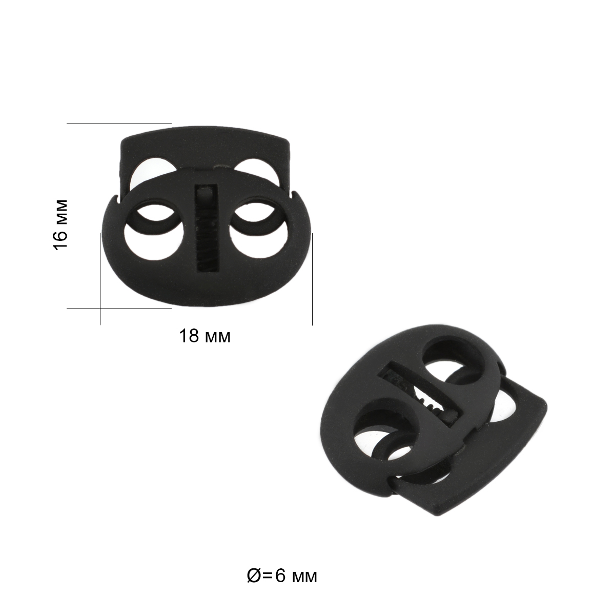 Зажим для 2-х шнуров. Применяются для фиксации шнуров в застежках, декоративных элементах и пр.