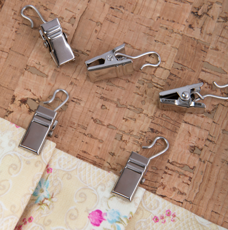 Металлический зажим с крючком, для крепления штор на карнизе.