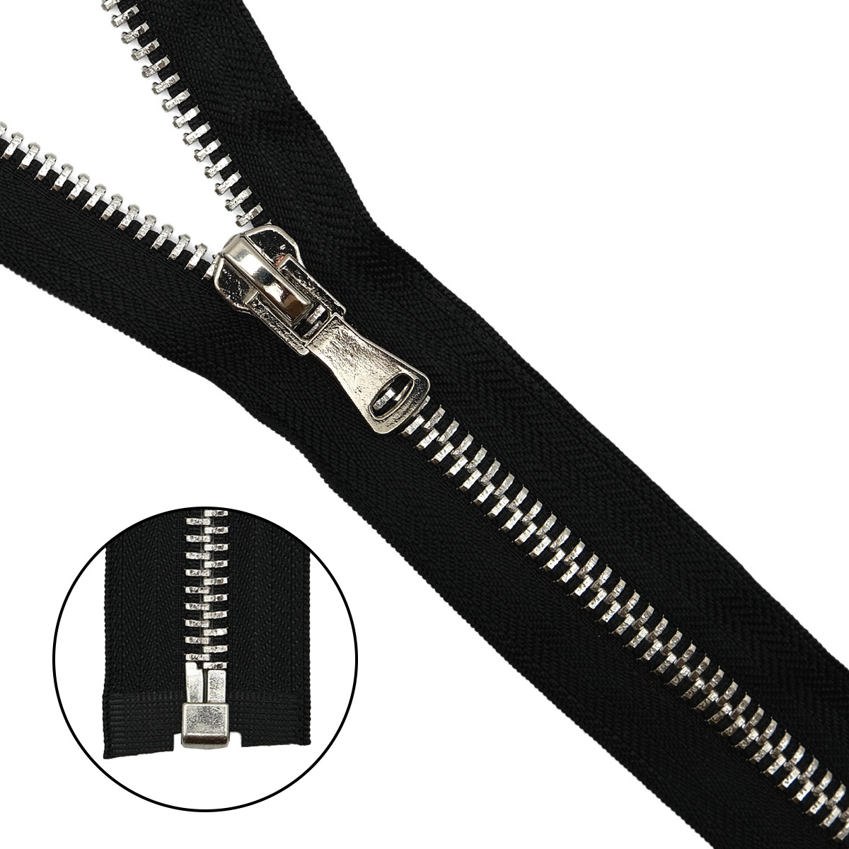 Молнии металлические используются в швейной промышленности при изготовлении одежды для взрослых и детей, а также сумок, декоративных наволочек, различных аксессуаров. Такую застежку можно вшивать в карманы, сумки. Молния выполнена из материалов высокого качества. Текстильная лента из полиэстера прошла противоусадочную обработку, не линяет при стирке и химической чистке, благодаря плотному саржевому переплетению нитей долговечна и устойчива к износу. Цвет молнии – никель. Металлический слайдер свободно скользит по текстильной ленте.
