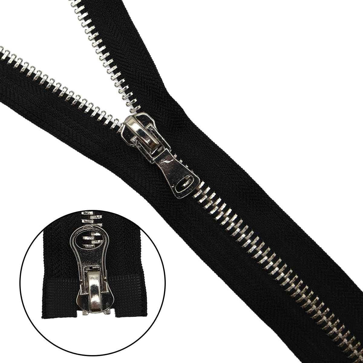 Металлические молнии T8 используются при шитье вещей из тканей средней и высокой плотности, натуральной и искусственной кожи, замши. Разъемная молния с 2 замками подходит для оформления застежки на куртке, жилете или рубашке.