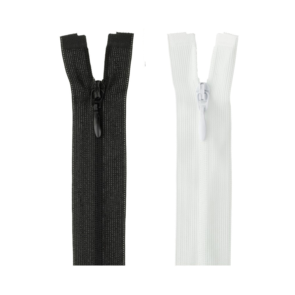 Звенья потайной молнии расположены с изнаночной стороны и в застегнутом виде не видны, так как с лицевой стороны находится только бегунок. Применяется в детских и женских изделиях из легких тканей. Рекомендуемая температура глажения 60-100° С. При стирке тесьма не линяет и продолжает сохранять форму. Неоспоримым преимуществом такой молнии, помимо высокого качества, является небольшой вес, что позволяет использовать застежку в производстве постельного белья и декоративных аксессуаров.