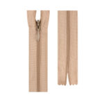 Звенья потайной молнии расположены с изнаночной стороны и в застегнутом виде не видны, так как с лицевой стороны находится только бегунок. Применяется в детских и женских изделиях из легких тканей. Рекомендуемая температура глажения 60-100° С. При стирке тесьма не линяет и продолжает сохранять форму. Неоспоримым преимуществом такой молнии, помимо высокого качества, является небольшой вес, что позволяет использовать застежку в производстве постельного белья и декоративных аксессуаров.