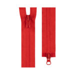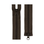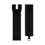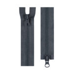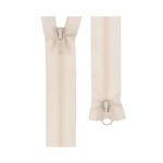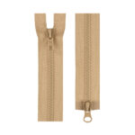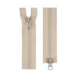 Разъемная молния с тканевой заделкой низа. Отличается легким движением замка по ленте и повышенной морозостойкостью. Испытания показали, что упругость и устойчивость к ударным нагрузкам сохраняются при температуре до -60° С. Это наиболее надежный и износостойкий тип молнии. Наличие двух замков позволяет использовать молнию для рюкзаков, сумок и верхней одежды. Температура при глажении 100-150° С.