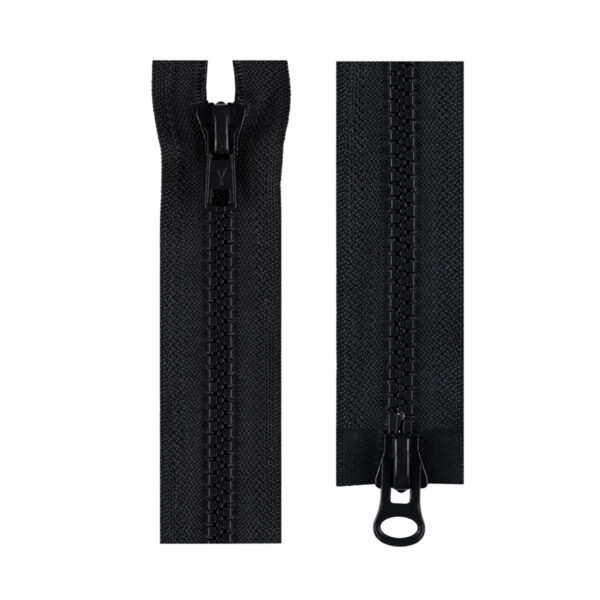 Разъемная молния с большим звеном и тканевой заделкой низа. Отличается легким движением замка по ленте и повышенной морозостойкостью. Используется, как правило, для верхней одежды. Испытания показали, что упругость и устойчивость к ударным нагрузкам сохраняются при температуре до -60° С. Наличие двух замков позволяет использовать молнию для рюкзаков, сумок и верхней одежды. Температура при глажении 100-150° С.