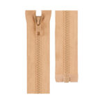 Отличается легким движением замка по ленте и повышенной морозостойкостью. Испытания показали, что упругость и устойчивость к ударным нагрузкам сохраняются при температуре до -60° С. Это наиболее надежный и износостойкий тип молнии. Молния такого типа чаще всего используются при пошиве верхней одежды. Температура при глажении 100-150° С.