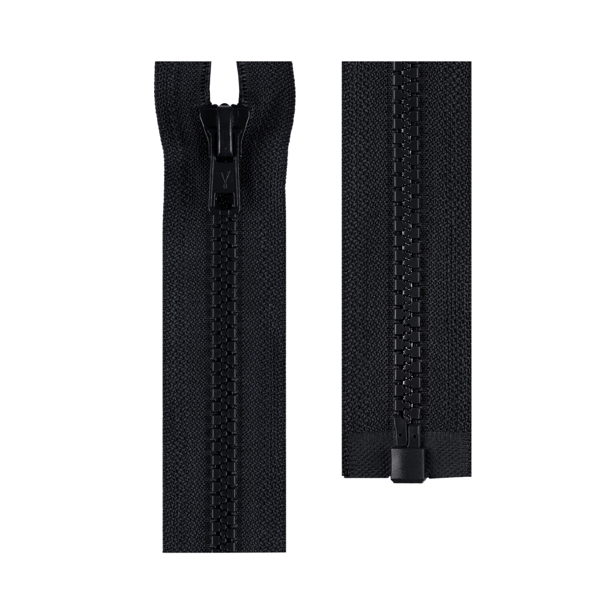 Разъемная молния с большим звеном и тканевой заделкой низа. Отличается легким движением замка по ленте и повышенной морозостойкостью. Используется, как правило, для верхней одежды. Испытания показали, что упругость и устойчивость к ударным нагрузкам сохраняются при температуре до -60° С. Рекомендуемая температура при глажении 100-150° С.