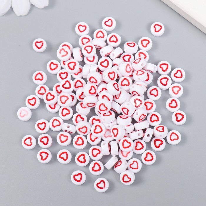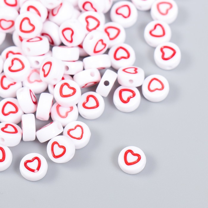 Набор бусин «Арт Узор. Красное сердце с белой серединкой», 20г