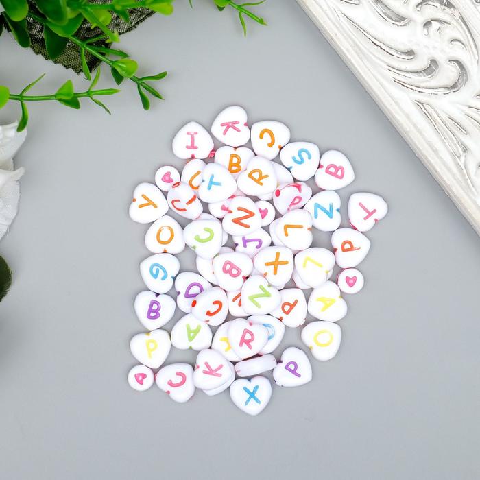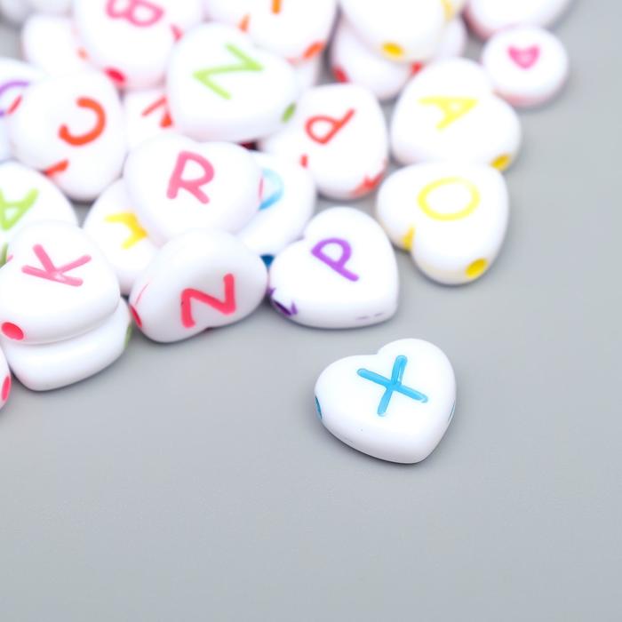 Набор бусин для творчества пластик «Английские буквы на сердце», 1,2х1,2см