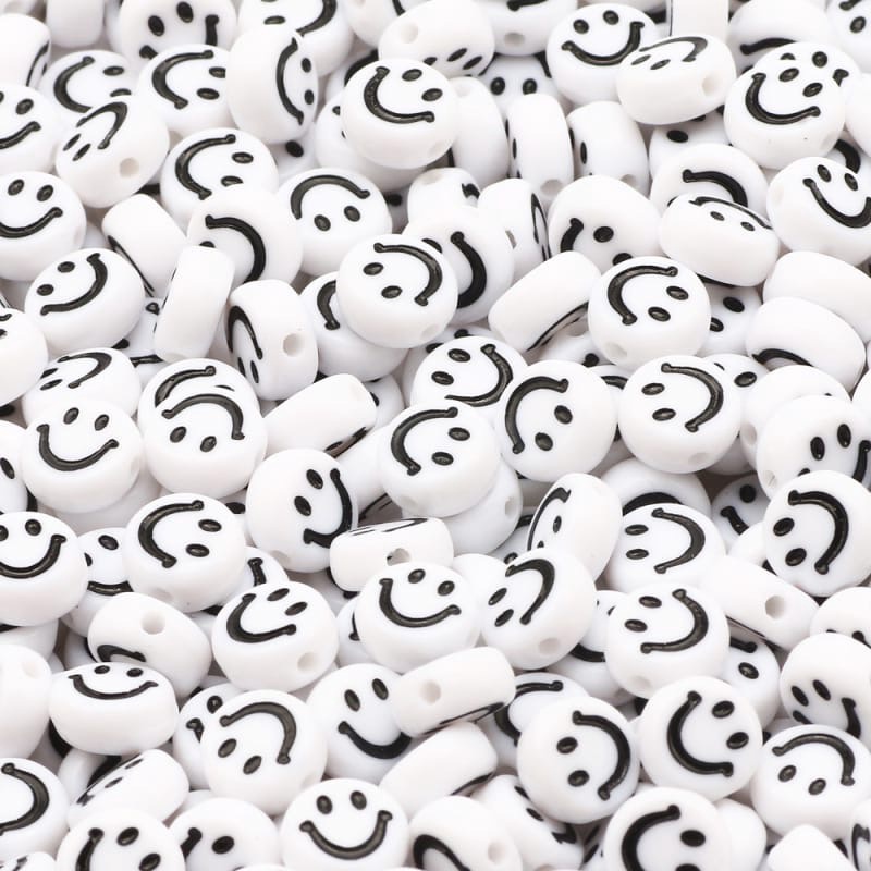 Набор бусин для творчества пластик «Белые смайлики», 7мм