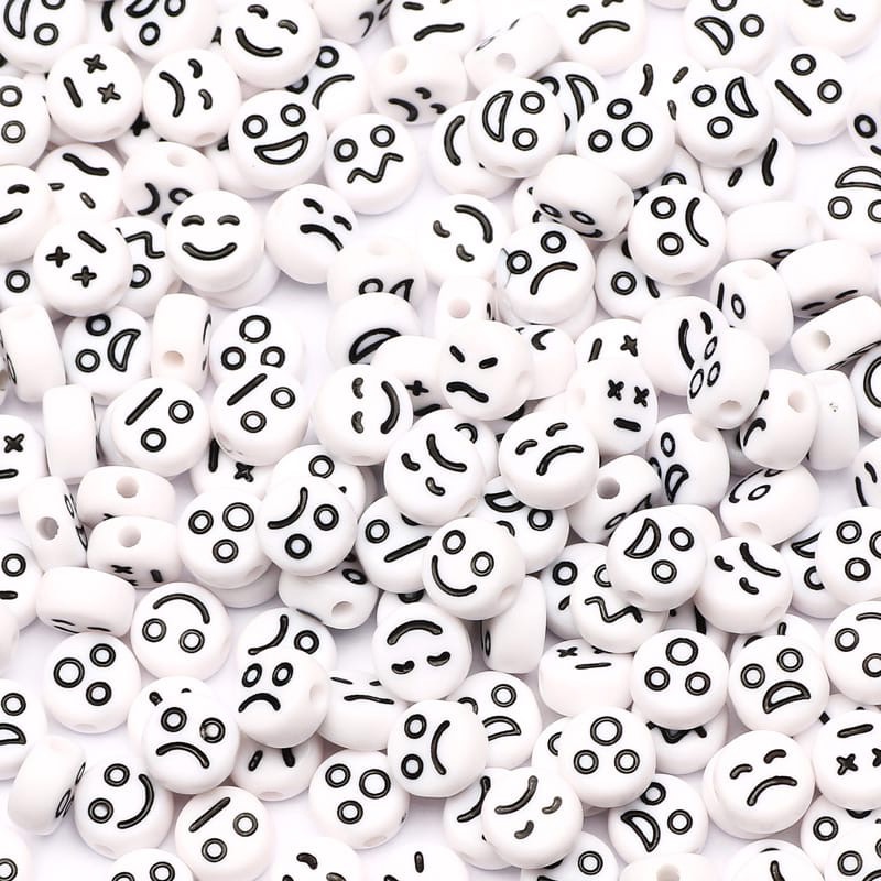 Набор бусин для творчества пластик «Белые смайлики», 7мм
