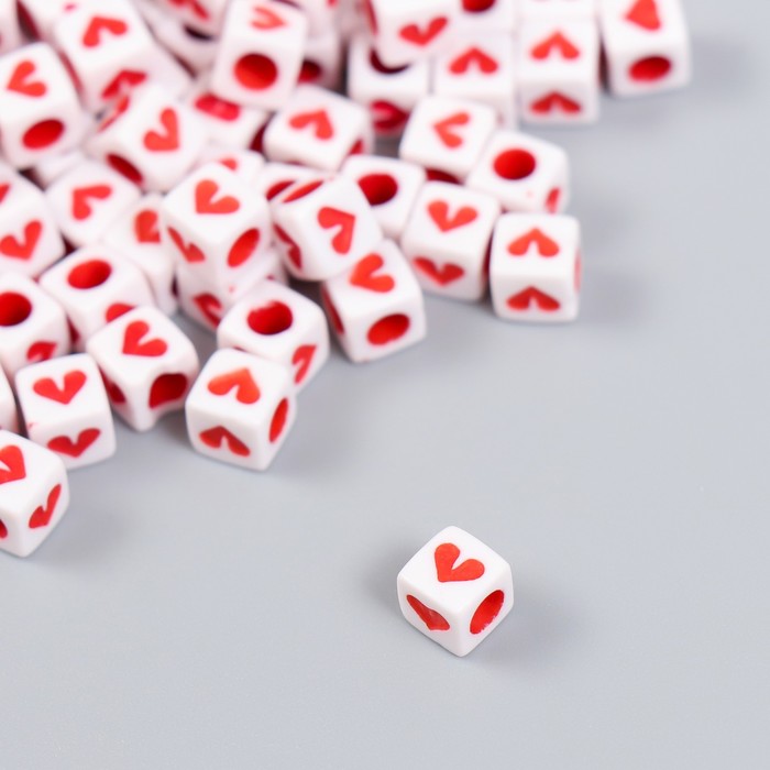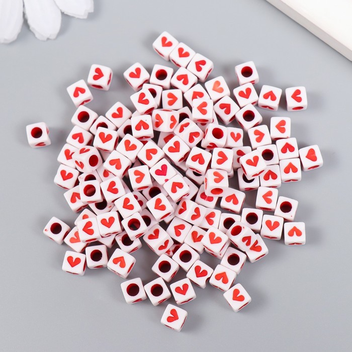 Набор бусин для творчества пластик «Красное сердечко в кубе» 20 гр 0,5х0,5 см
