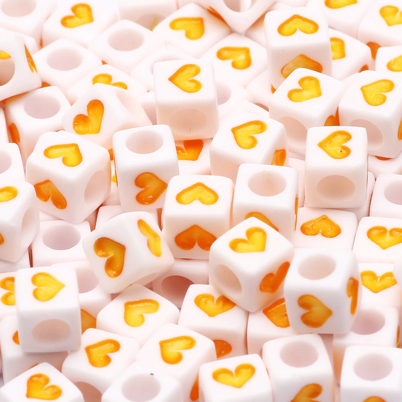 Набор бусин для творчества пластик «Квадратики с сердечками», 6мм
