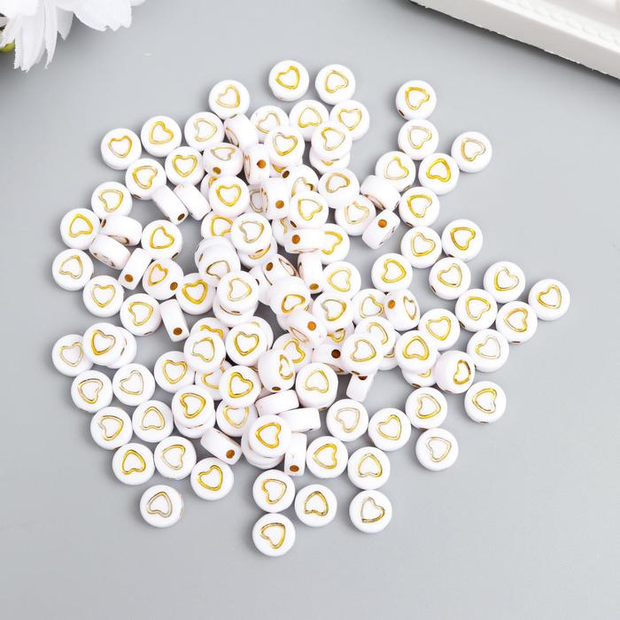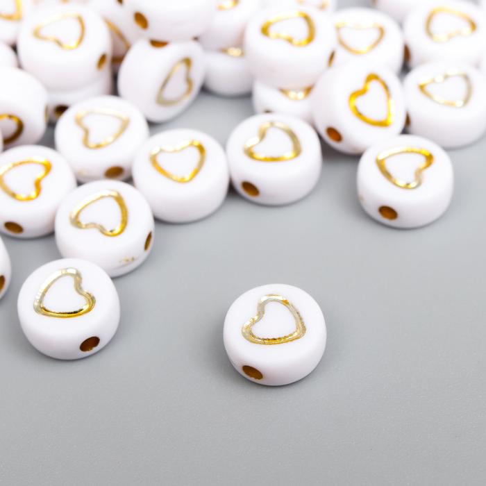 Набор бусин для творчества пластик «Золотое сердечко в круге», 0,3х0,7х0,7 см