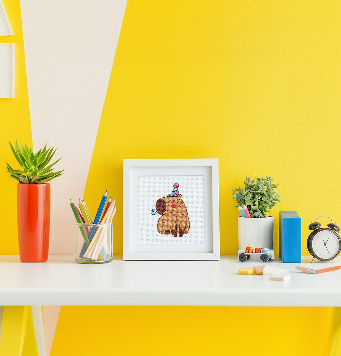 В набор для вышивания Klart входит: канва Aida №14 Gamma, хлопчатобумажные нитки мулине Gamma, игла для вышивания Gamma, цветная схема, ключ и инструкция по вышиванию.