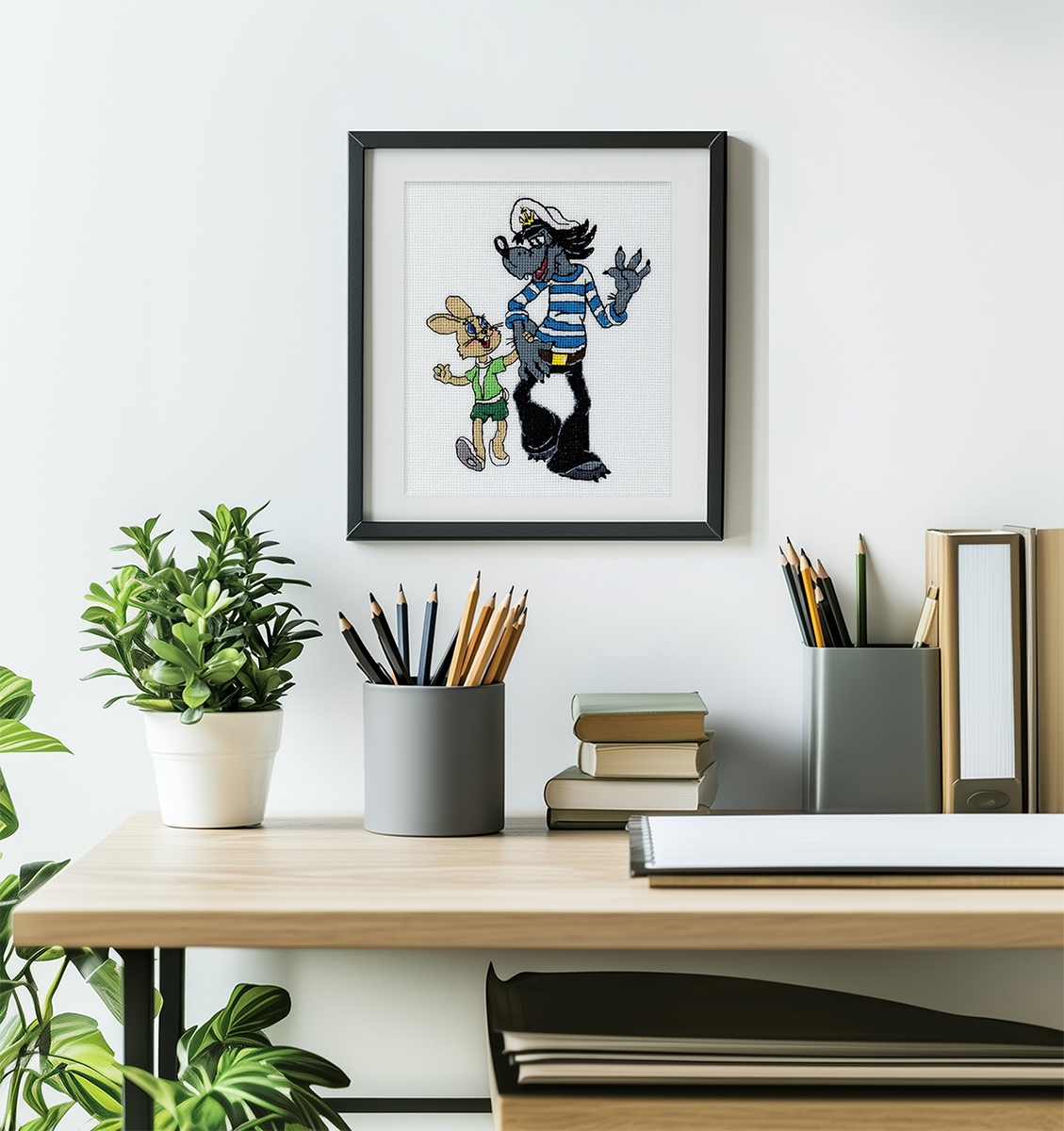 Эксклюзивная серия наборов по лицензии «Союзмультфильм». В набор для вышивания Klart входит: канва Gamma Aida №16, хлопчатобумажные нитки мулине Gamma, игла для вышивания Gamma, ч/б схема с цветными символами, инструкция по вышиванию.